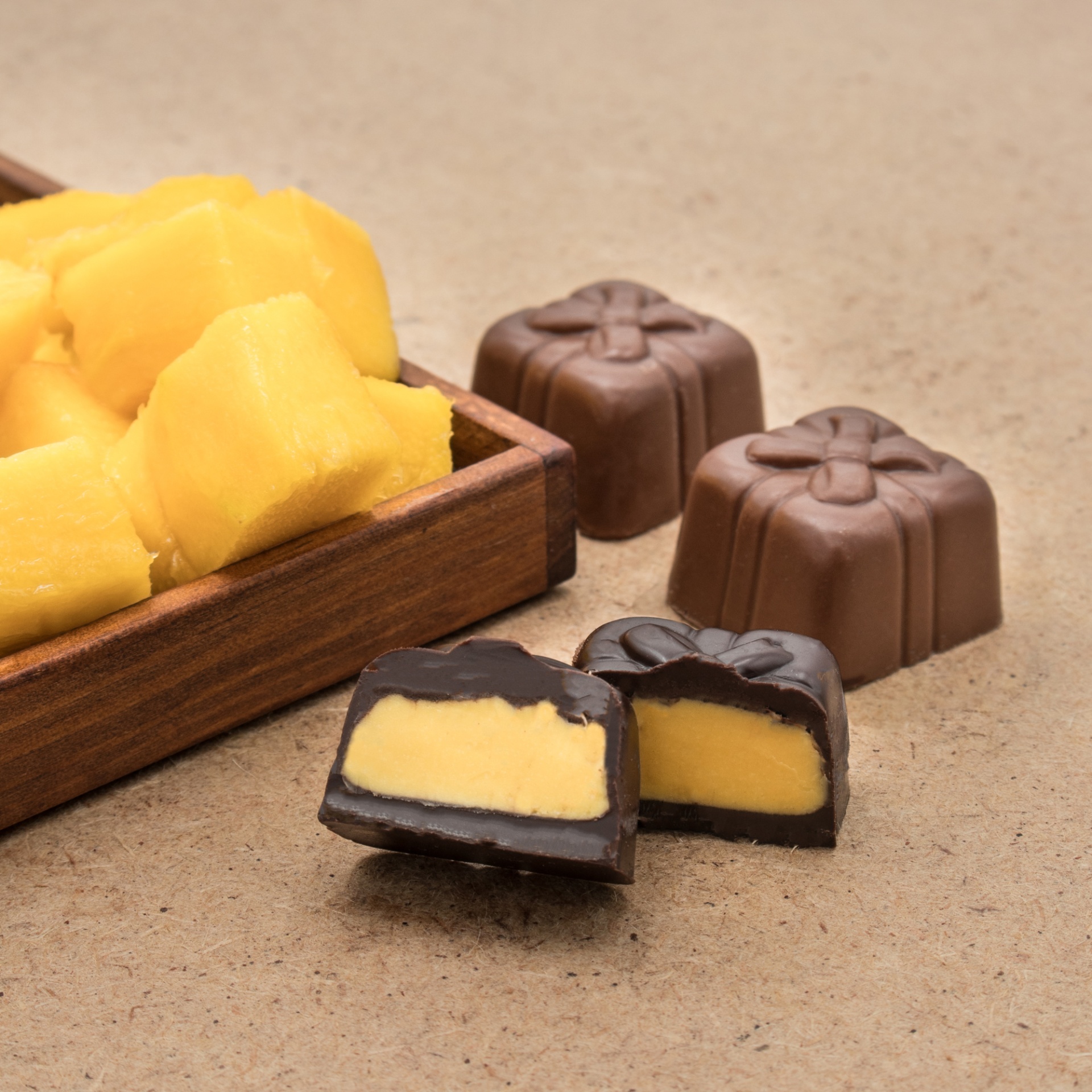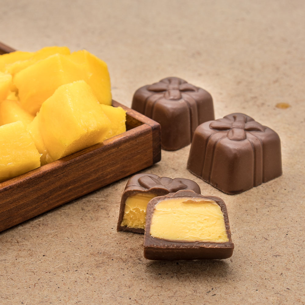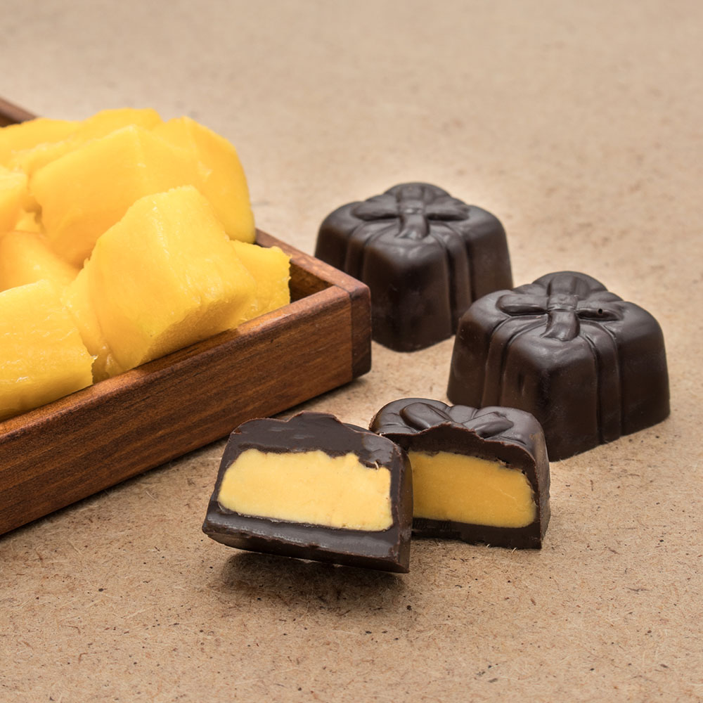 BOMBONS DE CHOCOLATE NEGRO 70% COM RECHEIO DE MANGA