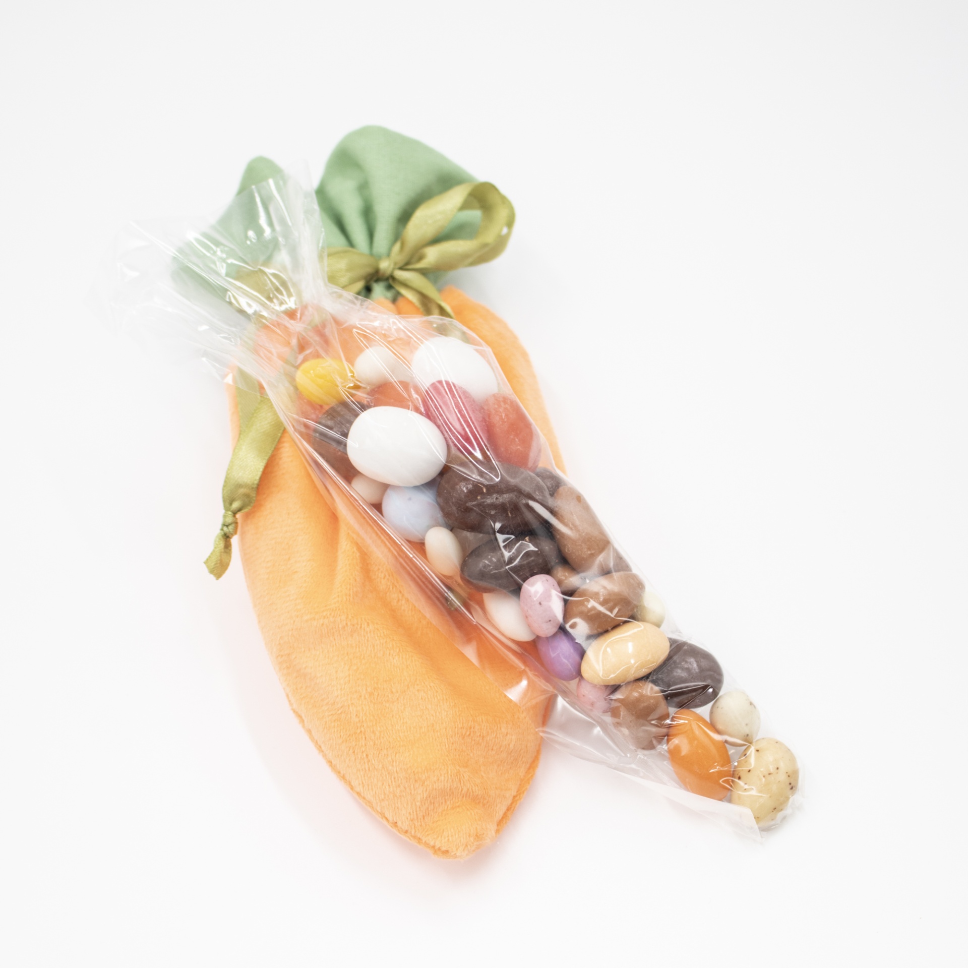Esta original cenoura de pano decorativa, inspirada num dos símbolos mais icónicos da época, inclui 150g de sortido de amêndoas cuidadosamente selecionadas, tornando-se num presente simples, alegre e irresistível.