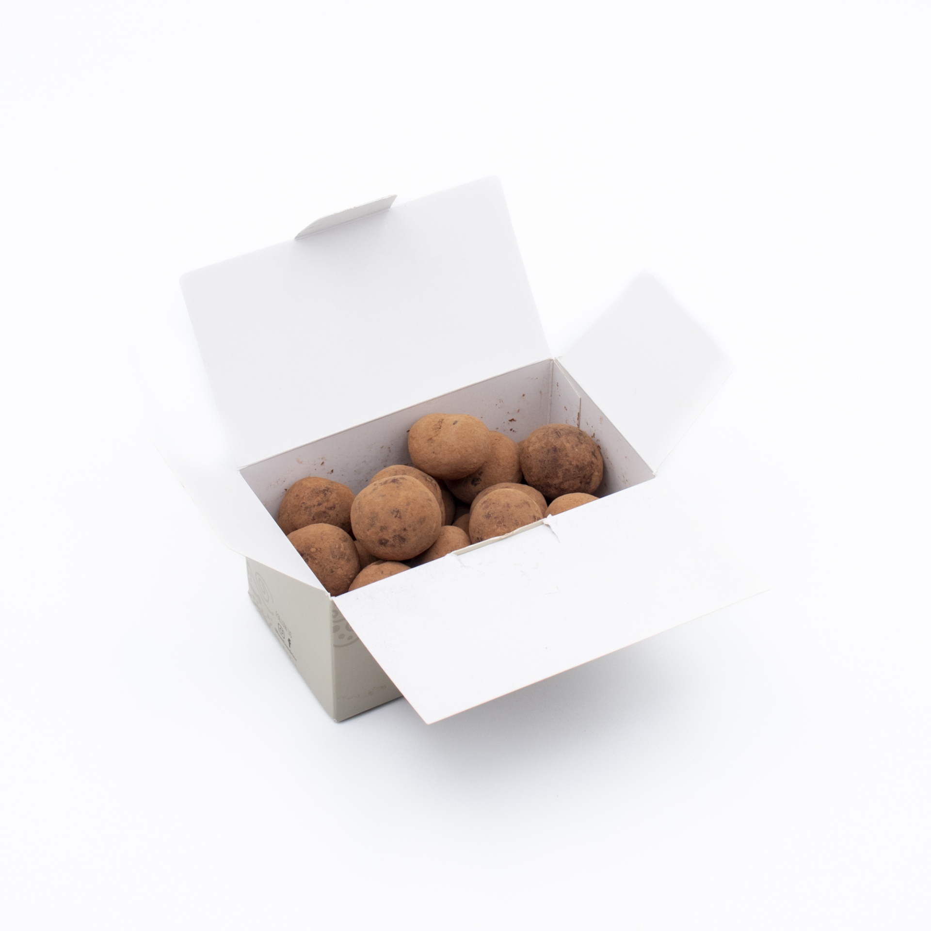 Combina, na perfeição, a amêndoa caramelizada e crocante, envolta em suave chocolate de leite e terminada com cacau em pó — uma textura aveludada que derrete na boca e contrasta com o interior estaladiço.
