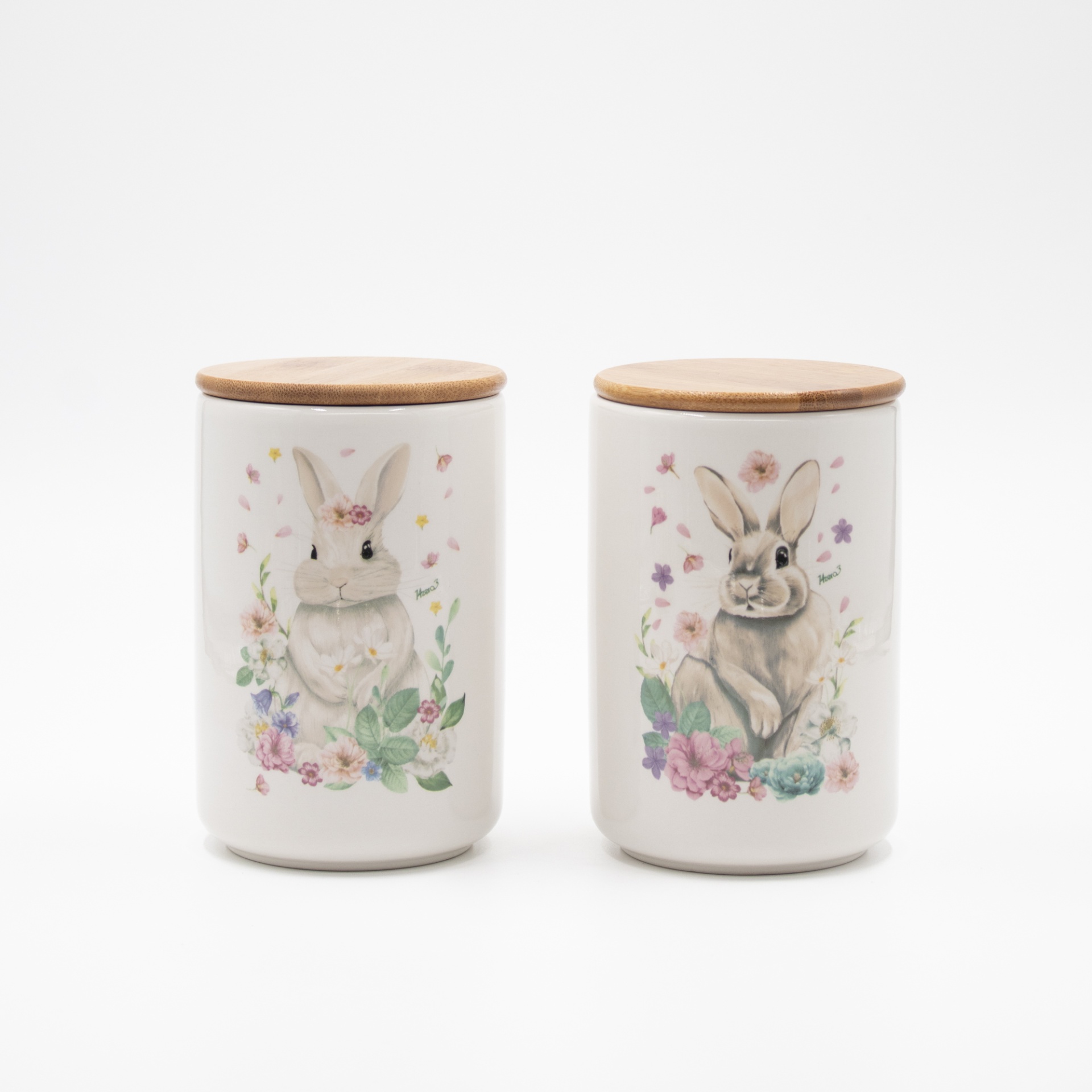 Este delicado frasco em cerâmica decorado com motivo de coelho, complementado com tampa hermética em bambu, combina charme decorativo com uma seleção de 500g de sortido de amêndoas, cuidadosamente escolhidas para proporcionar uma experiência doce e sofisticada.
