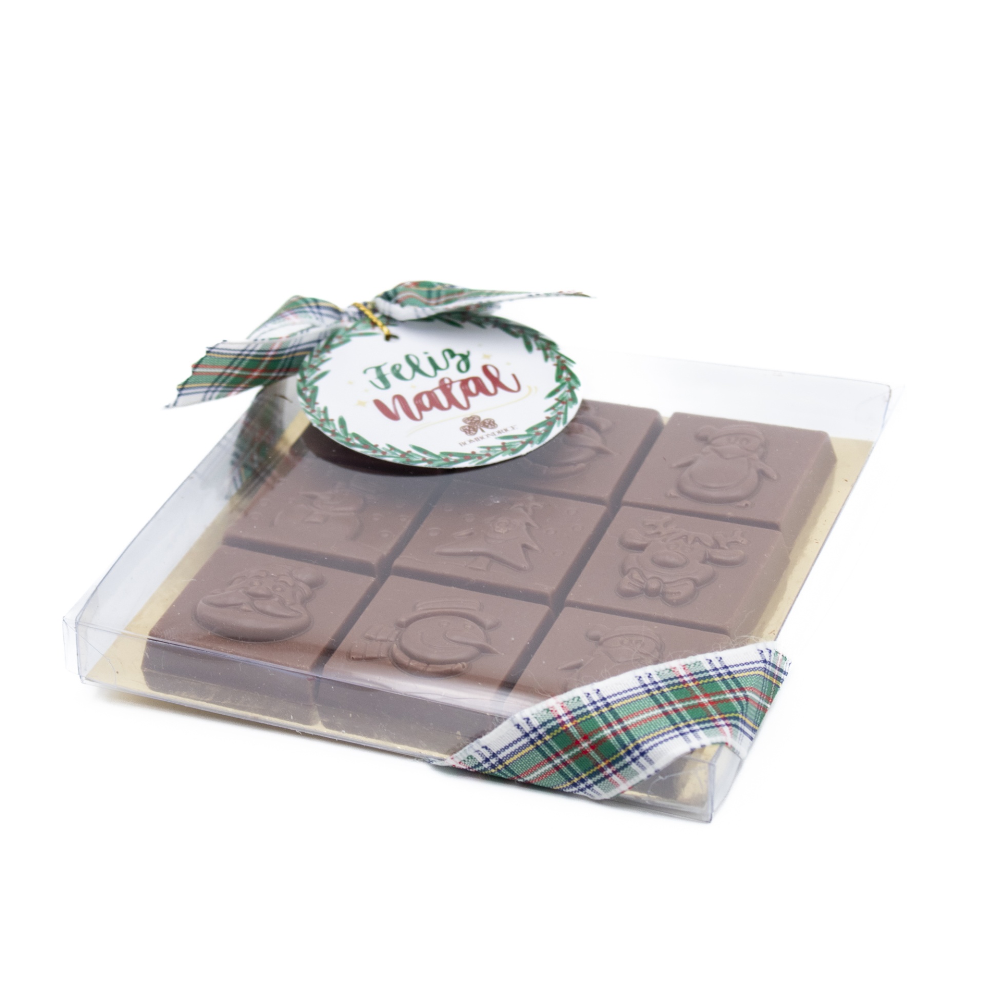 Feita com chocolate de leite e com pequenas figuras natalícias — o Pai Natal, a árvore, o boneco de neve e outros símbolos mágicos — é o presente perfeito para adoçar esta época com originalidade.