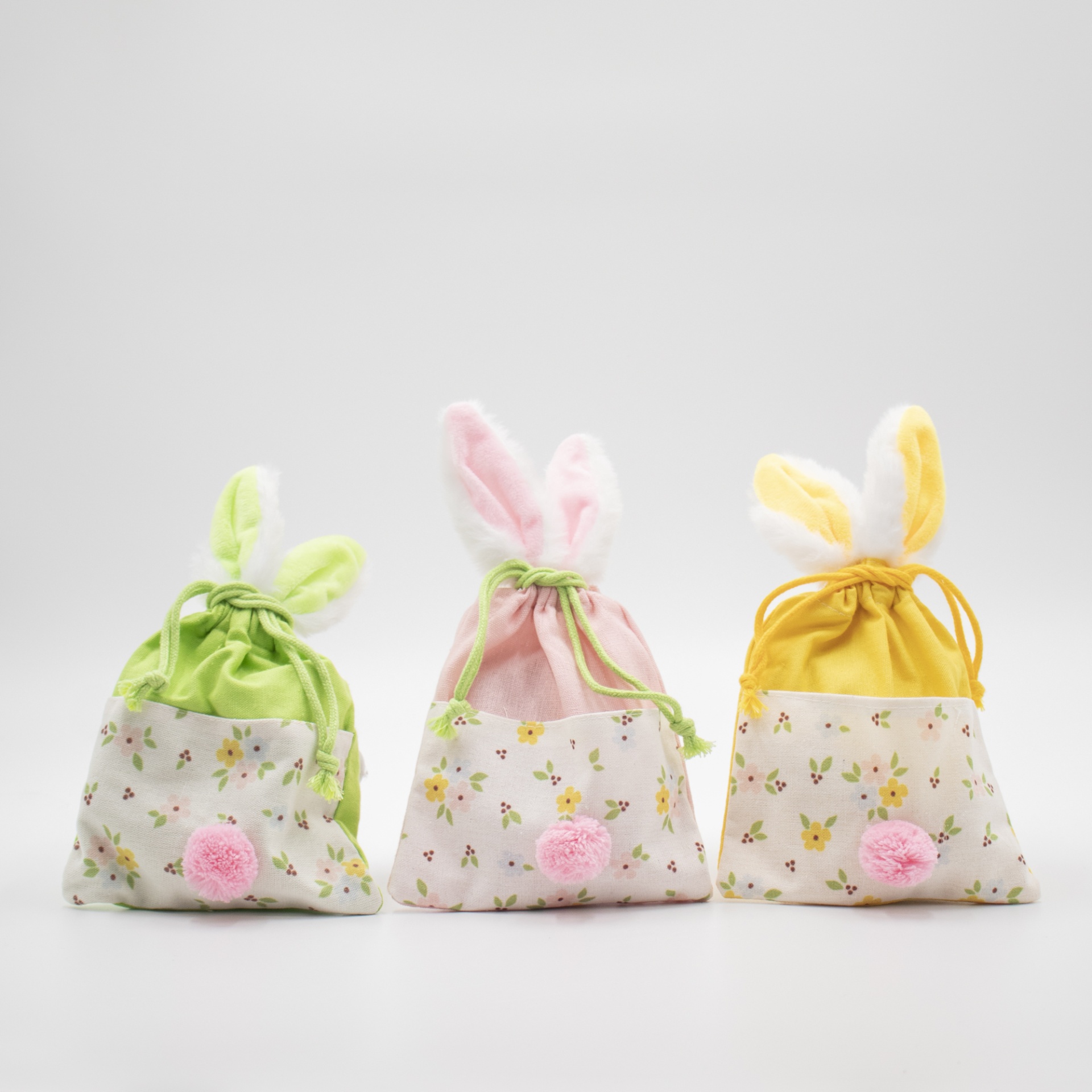 Saco de pano reutilizável em forma de coelho.
